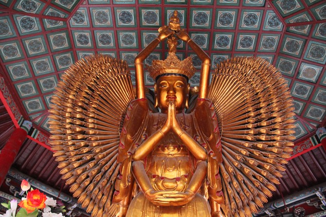 接著我們來到了大相國寺,大相國寺是中國著名的佛教寺院,唐睿宗因紀念其有相王登上皇位,賜名大相國寺。北宋時期,相國寺深得皇家尊崇,多次擴建,占地達500余畝,轄64個禪、律院,養僧千余人,是京城最大的寺院和全國佛教活動中心。《水滸傳》描寫的魯智深倒拔垂楊柳的故事,就發生在其所轄之地。后因戰亂水患而損毀。清康熙十年(1671年)重修。目前保存有天王殿、大雄寶殿、八角琉璃殿、藏經樓、千手千眼佛等殿宇古跡。
