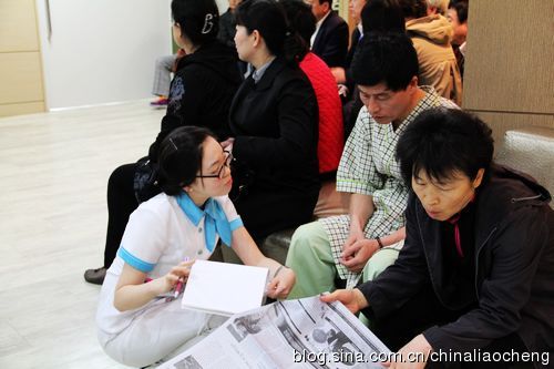 即使,我們來到的是醫院,但是人也依然很多,看,主治醫生正在為我們講解一些醫院的概況和看病的秩序性。