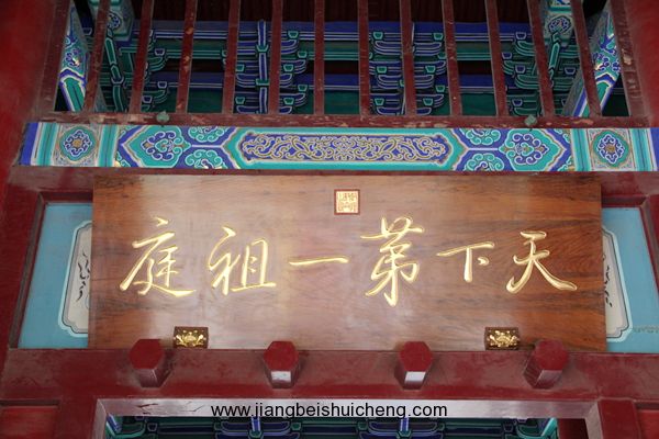 經(jīng)甬道過(guò)碑林后便是天王殿,三間重檐歇山頂?shù)钐茫饷嬗袃纱蠼饎偅瑑?nèi)里則是四大天王像,威武雄壯。