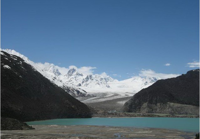 然烏湖北面有著名的拉古冰川,冰川延伸到湖邊。每當(dāng)冰雪融化時(shí),雪水便注入湖中,使然烏湖經(jīng)常保有豐富的水源。然烏湖邊是綠草茵茵的草場(chǎng)和綠油油的莊稼;湖邊山腰上則是莽莽的森林,再往上是五顏六色的杜鵑花和灌木叢林帶;山頂則是終年不化、重疊起伏的雪山。