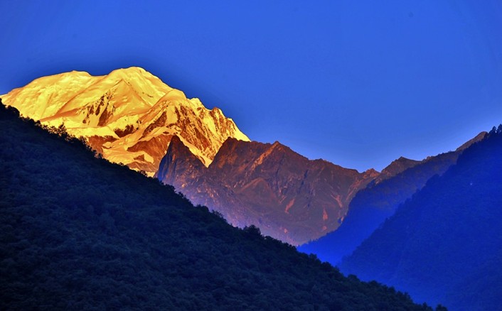 貢嘎山海拔7556米,是四川省最高的山峰,被稱為“蜀山之王”。山區高峰林立,冰堅雪深,險阻重重,是中國海洋性山地冰川十分發育的高山之一,在登山運動和科學研究中占有十分重要的地位,是一座極受登山愛好者青睞的名山。