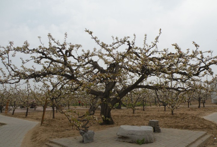 梨園三君子:相傳,明洪武初年,此地荒草遍地、人煙稀少,皇帝幾次頒詔從外地遷民。因為民眾多數(shù)是新遷來的,所以不知道梨樹怎樣管理,常常愁得沒有辦法。據(jù)說,當時有三位俠義風骨的老人,個個精通育梨技藝,他們結(jié)拜兄弟,經(jīng)常在梨園聚集飲酒。鄉(xiāng)親們每次遇到困難,他們都會慷慨相助,若有求教育梨技術的,更是不厭其煩地耐心傳授。同時,他們還出錢在梨園四周廣泛地種植榆樹、楊樹,以抵御風沙。老百姓得到很大的益處,無不深切感念。三位老人逝世后,鄉(xiāng)親們便在他們生前經(jīng)常聚飲的地方,栽植了三棵梨樹,后人取名“梨園三君子”。