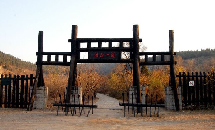 梁山有三關六寨之說,梁山一關為木質結構,柵欄形式,有濃郁的山寨特 點,也是進入梁山的第一道屏障,根據《水滸傳》第七十回描寫,第一關由解珍、解寶兩頭領駐守在此。壁壘森嚴,雄渾壯觀,后多次遭到破壞,2002年又進行了修復。當我們走進這條雜草陳槐,曲折逶迤的古寨道,就會從這荒野的氣息中,領略出當年好漢嘯聚山林,八方共域,異姓一家,豪放不羈,快活灑脫的綠林生活情景。