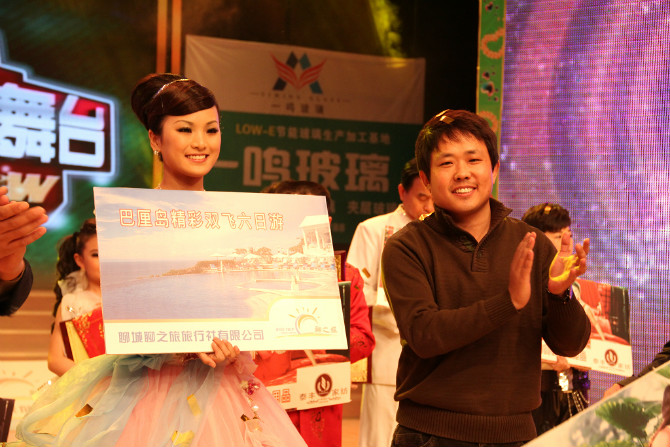 2月18日下午,聊城本土大型平民選秀電視節目《我要秀舞臺》2011年度總決賽在聊城電視臺演播大廳落下帷幕,10名選手經過兩輪激烈角逐,最終評出冠亞季軍各一名。來自部隊的文藝女兵任歡歡以近乎專業的歌唱表演脫穎而出,獲得年度總冠軍。年僅11歲的小學生王巖旭以精彩的山東快板獲得亞軍。來自臨清的農民歌手姬生飛雖然雙目失明,但仍憑借自己的努力和實力獲得季軍。冠軍任歡歡獲得了由聊城聊之旅旅行社有限公司贊助的1等獎:巴厘島精彩雙飛六日游,董事長劉寶平參加了頒獎!