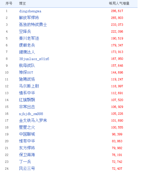 中國聊城博客進軍新浪博客 周排名第19名