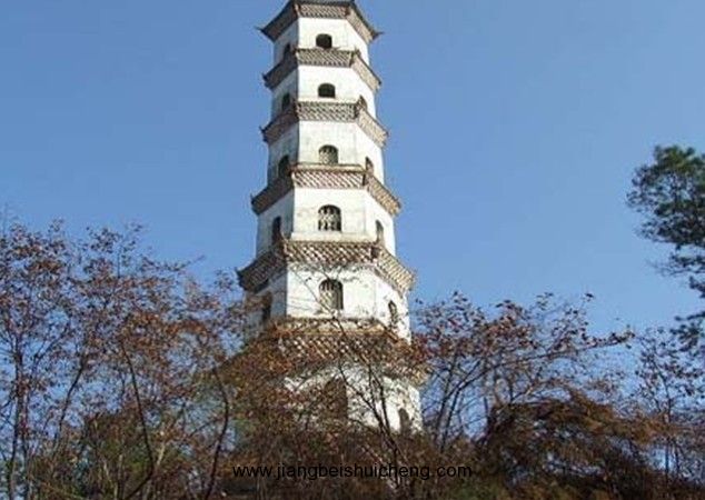 塔平面六邊形,底邊長3.9米,七層樓閣式磚塔,通高36米,塔身疊澀出檐。底層以及三至七層正面各開券頂門,二層各面相間開長方形、圓形窗,其余各層相間、上下相錯開5個方形窗。塔頂六角攢尖。塔內各層設木樓板和木樓梯。門額有阮元題刻的“秀發梧江”、“觀文成化”、“光射牛斗”等石匾。1982年維修,改木樓梯為鐵樓梯。