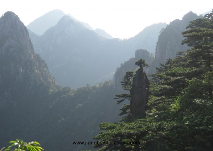 傳說,有年春天,詩人李白來到黃山,見到北海山峰競秀,景色奇美,禁不住詩興大發(fā),便昂首向天,高聲吟道:“黃山四千仞,三十二蓮峰;丹崖夾石柱,菡萏金芙蓉。……”這聲音驚動了獅子林禪院的長老。他走出山門,細(xì)細(xì)一看,只見一位白衣秀士,風(fēng)度瀟灑,便上前施禮,請問尊姓大名。