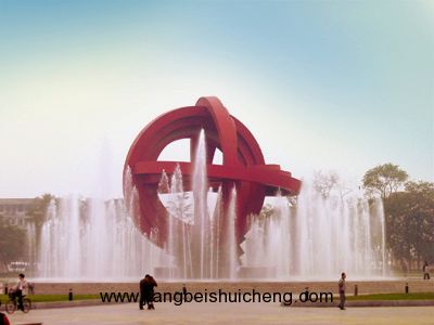和平廣場由主體雕塑所在的中心區、浮雕墻、小品雕塑“書”和音樂噴泉組成的次中心區、草坪區、休息區以及停車場組成,是以點、線、面的現代構圖手段將主景球體、雕塑墻、大面積草坪組合成一個具有科技、文化品位的廣場。綜合反映了合肥作為科技城以及正在向現代化大城市邁進的風采,既富有濃郁的合肥地方特色,又充盈著時代感,以巧妙的構思和較高的科技水準塑造了面向21世紀的城市廣場空間。廣場的主景是球體,名叫“天地間”,是廣場的主體雕塑。版權所有,山東聊城聊之旅國際旅行有限公司轉載必究!高21米,以鮮艷奪目的紅色為基調,結合中國古代渾天儀的造型特征,采用現代藝術造型方式,用交錯旋轉的環結構,既使人感到它有強大的內聚力,又使人感受到它剛勁的運動張力。它猶如一輪紅日升起在合肥的東方,從而以強烈的時代氣息展示了現代合肥的風貌。