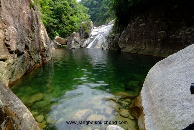 從瀉玉瀑,順蜿蜒而上的步道,經水晶瀑便來到鯢魚(又名娃娃魚)棲息的鯢魚潭(鯢魚潭實為弓瀑沖擊成)。