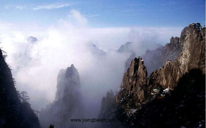 仙女繡花在安徽省黃山的白云景區(qū),位于排云亭前,向左眺望,遠(yuǎn)處石床峰上有一巧石似少女,面前有一奇松,如繡花臺繃,美其名“仙女繡花”。