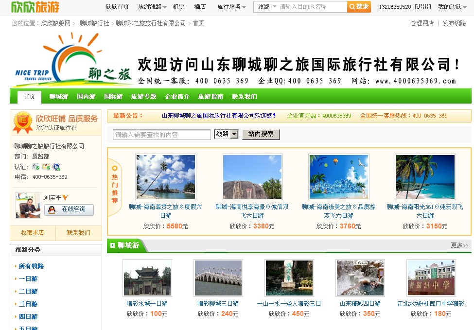 熱烈祝賀聊之旅國際旅行社欣欣旅游網開通旺鋪!