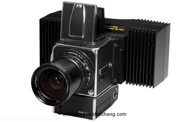 圖中這臺安置在一臺 Hasselblad 500EL 相機上。可拍攝黑白照片,或者通過鏡頭前固定的機械化過濾器轉(zhuǎn)輪分別用紅、綠、藍色三片濾鏡曝光后再合成一幅全彩照片。