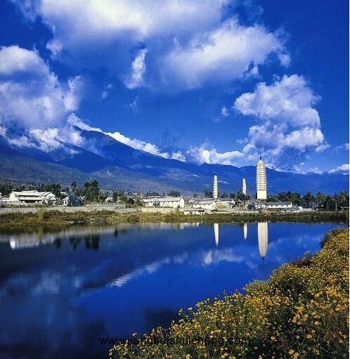 崇圣寺三塔和三塔倒影公園互為添輝,相與增色,從而成為最能代表大理形象的重要人文景觀。倒影公園最有特點(diǎn)的是池水碧綠如玉、清澈見(jiàn)底、浪不驚、平如鏡,三塔倒影清晰,令人嘆為觀止。角度不同,倒影形態(tài)亦隨之各異,是攝三塔最佳場(chǎng)所。在冬季,整座蒼山銀妝素裹,三塔倒影更加美麗迷人。正如清代楊炳锃《三塔倒影》所贊“佛都勝概肇中堂,三塔嶙嶙自放光。蒼麓湖蟠倒影,此中幻相說(shuō)空王。