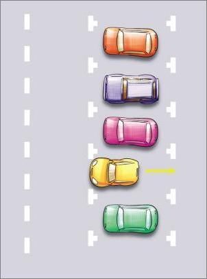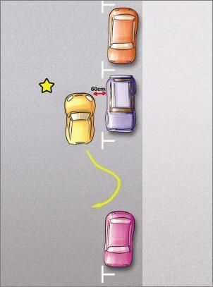 4、保持自己的車與前車間距60厘米左右并調到平齊位置