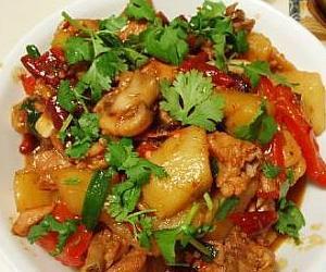 新疆大盤雞起源于90年代初期,主要是雞塊和土豆塊,配皮帶面烹飪而成,新疆大盤雞色彩鮮艷,有爽滑麻辣的雞肉和軟糯甜潤的土豆,辣中有香,粗中帶細。而且經濟實惠,親朋聚會食用尚家。