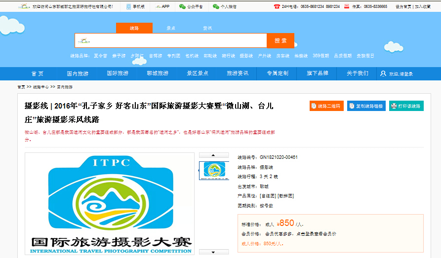山東聊城聊之旅國際旅行社有限公司發布的攝影旅游專項產品。