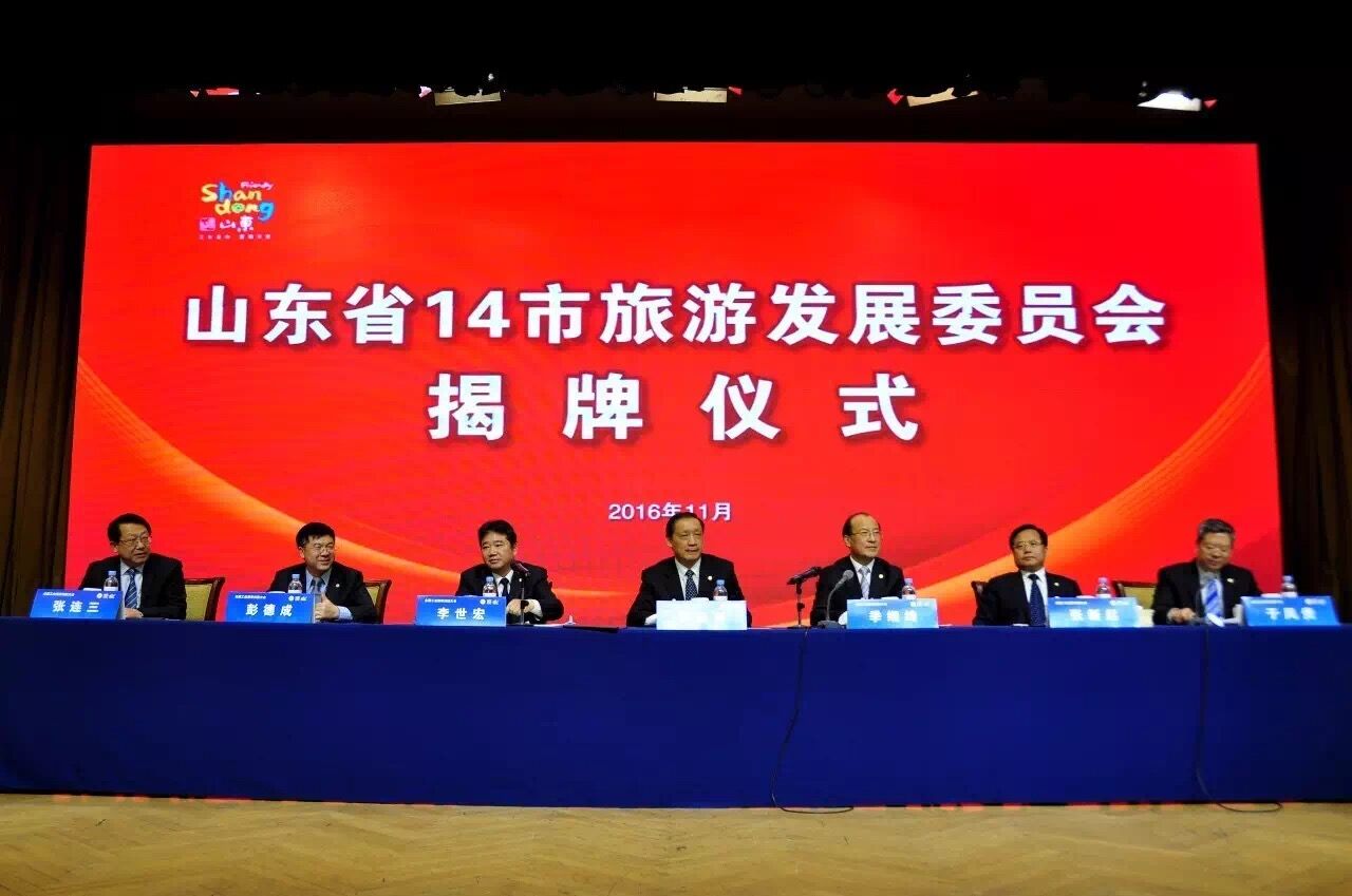 11月28日,山東省14市旅游發(fā)展委員會(huì)揭牌儀式在青島舉行。國(guó)家旅游局局長(zhǎng)李金早出席儀式。山東省人民政府副省長(zhǎng)季緗綺、國(guó)家旅游局副局長(zhǎng)李世宏出席并致辭。青島市人民政府市長(zhǎng)張新起、國(guó)家旅游局規(guī)劃財(cái)務(wù)司司長(zhǎng)彭德成、山東省人民政府辦公廳副巡視員張連三參加儀式。山東省旅游發(fā)展委員會(huì)主任于風(fēng)貴主持儀式。