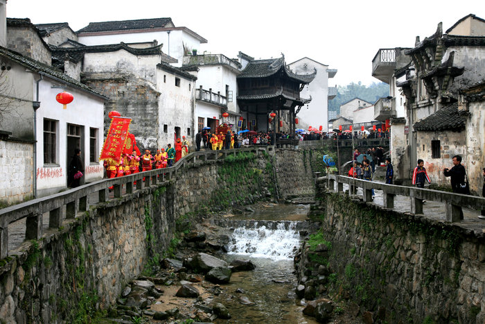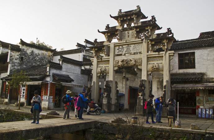 村中有祠堂、廟宇、橋梁各一百零八座;有孝子坊、貞節(jié)坊、官宦牌坊等十八座。古村老式民居鱗次櫛比,黝黑的屋瓦,淺灰的馬頭墻連成一片。大部分房子還都住人,可以像串門般地隨意進入居民家中轉(zhuǎn)悠。主人早已習(xí)慣,自管自忙活著;多有善意的笑容,但并不以特別的關(guān)注,使人更感自在親切。