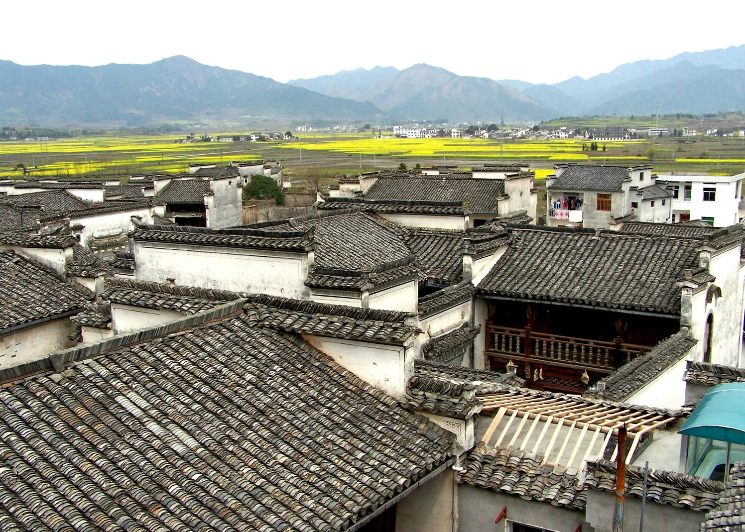 查濟村的明清民居古建筑群,坐落在流水潺潺的查濟河兩岸,綿延10里,現(xiàn)存有明代建筑80處,清代建筑109處。建筑群房屋結(jié)構(gòu),皆為多進式,分別是或三進、或四進的;進間有“四水到堂”式的天井,沿天井二摟廊廓置有“美人靠”;條石砌就墻基,柱基為圓形雕石,墻體青磚,屋上黑瓦,翹角飛檐。傳統(tǒng)的雙披屋頂半掩半露,躲在重重疊疊的山墻后面。高出屋頂?shù)纳綁Γ瓤勺柚够饎萋樱志叻辣I作用。山墻造型豐富,有云形、弓狀、階梯式等,墻頭呈翹首長空的馬頭狀。