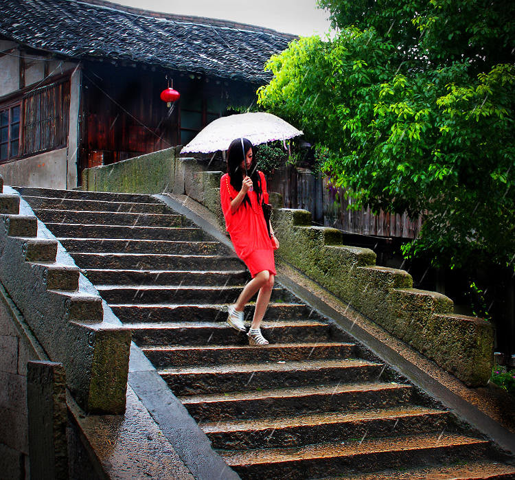 沿街而上,即可看到六座山峰環(huán)峙著村落,民居沿溪谷兩岸依山而筑,層層疊疊,錯落有致。兩邊的街道有許多巷弄,深邃幽長,行走其間三步一道坎,五步一石階,據(jù)說在有的居民家中,即便上床也得拾階而至,俗語道:磡頭磡,上床三檔磡。