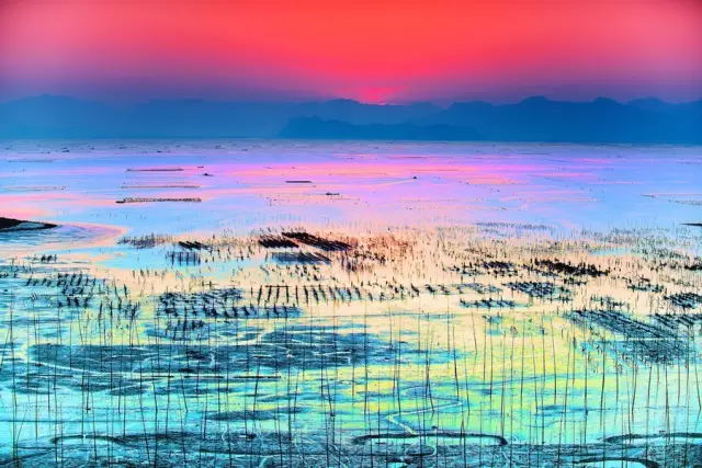 霞浦風光拍攝講究個包圍構圖,先用廣角拍攝幾張大場景,之后用長焦慢慢切割和雕琢畫面,選擇不同的構圖拍攝出新奇的畫面。對灘涂做精細切割畫面成小畫面得把握好幾點。