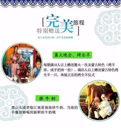 五、篝火晚會費。(每期滿10人將安排篝火一次,滿25人贈送蒙古特色烤全羊一只)