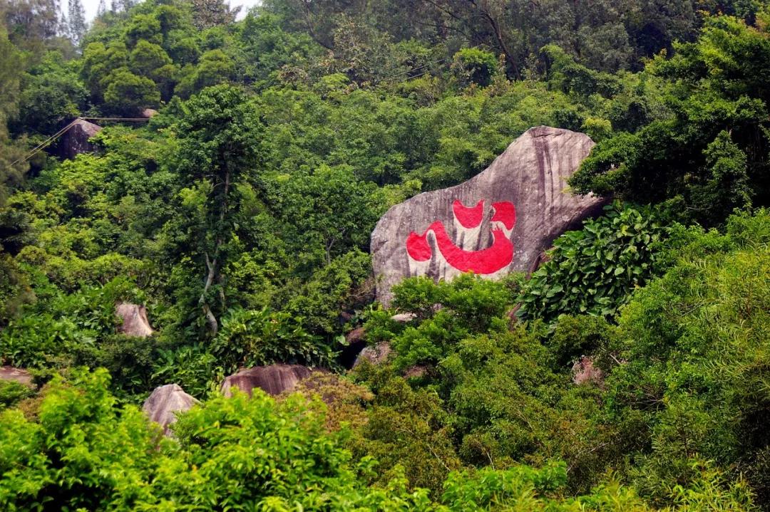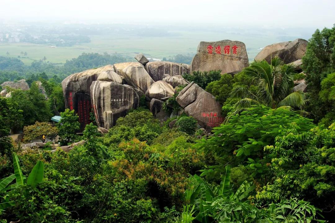 電視劇連續(xù)劇《紅樓夢》片頭中有一塊神姿仙態(tài)的“飛來石”,它就在被稱為“海南第一山”的東山嶺上。
