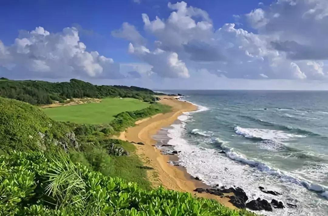 在山欽灣嶺頭北邊不僅有山欽古廟,一年四季香火鼎盛,吸引成千上萬善男信女進(jìn)香禮拜,祈禱保佑。還有評為亞洲TOP100高爾夫球場第一名的山欽灣高爾夫球場。