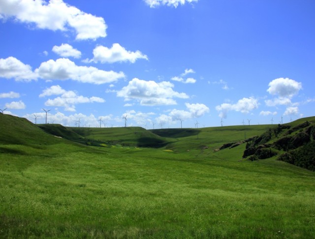 世界上保持完好的天然高山草甸草原,亞洲最大的風力發電廠,草質精良,牛羊成群,天然氧吧;也是典型的鮮花草甸草原,平均海拔2100多米,是世界少有且保持完好的天然草甸型草場,并確認十八種草種為珍稀草種,被譽為“仙境草原”。