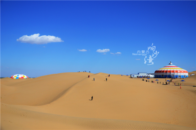 響沙灣位于內蒙古達拉特旗境內庫布其沙漠東端,是中國最大的沙漠旅游休閑度假地,國家5A級旅游景區。為中國三大鳴沙山之一,神秘的沙歌現象吸引著中外游客紛至沓來,融匯了雄渾的大漠文化和深厚的蒙古底蘊, 匯萃了激情的沙漠活動與獨特的民族風情,擁有世界第一條沙漠索道、中國最大的駱駝群、中國一流的蒙古民族藝術團。