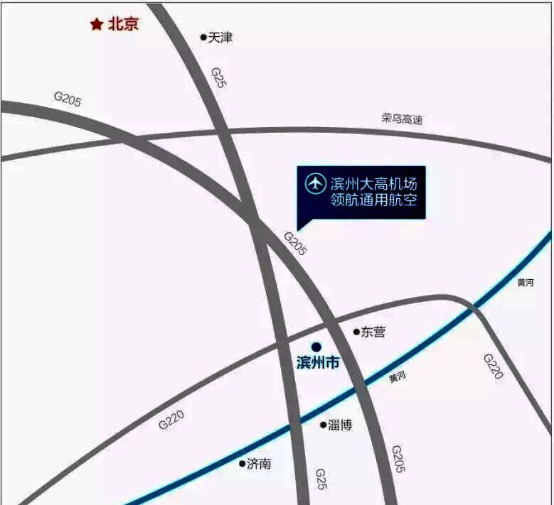 領航通航坐落于山東省濱州市大高航空城內,與濱奧飛機制造有限公司、濱州大高通用機場、濱奧飛機維修工程有限公司,共同打造集飛機生產、維修、飛行培訓、機場運營于一體的航空產業園,擁有國內最大的4座通用飛機生產線。