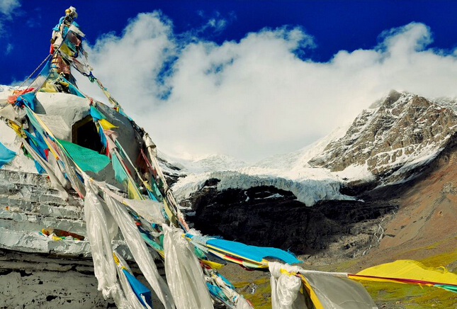 從止熱寺出發后到達天葬場,之后向前4km將經過轉山路上,最高點海拔5700米的卓馬拉山口。