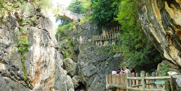 早餐后乘車2.5小時前往安順國家AAAAA級風景區【黃果樹景區】,途中參觀【多彩貴寶】。這里有我們600年傳承下來的老手藝玉雕工匠打造、嘔心瀝血,窮其畢生精力,兢兢業業,代代傳承,一件件傳世的精品黃龍玉!換乘景區環保車(已含電瓶車50元/人),游覽有水上石林、天然盆景之稱的【天星橋盆景園】游覽時間:不少于1小時;這里石與水相融一體,腳踏在石上,人行在水中,小橋流水,曲徑通幽,山石不高,清流不深,在石縫中穿行,就像兒時捉迷藏;最讓人過目不忘的是數生石,一面面形狀各異的青石,上面刻著365天的日期,每一天都是獨特的日子。