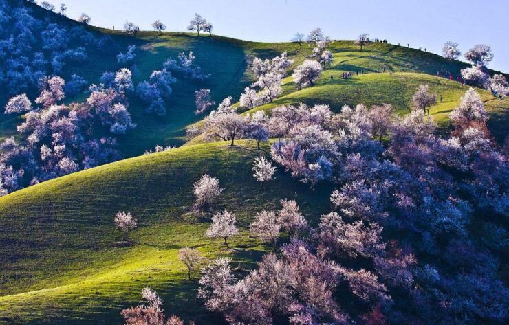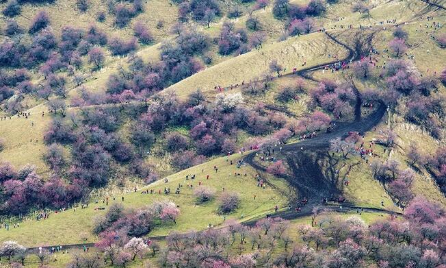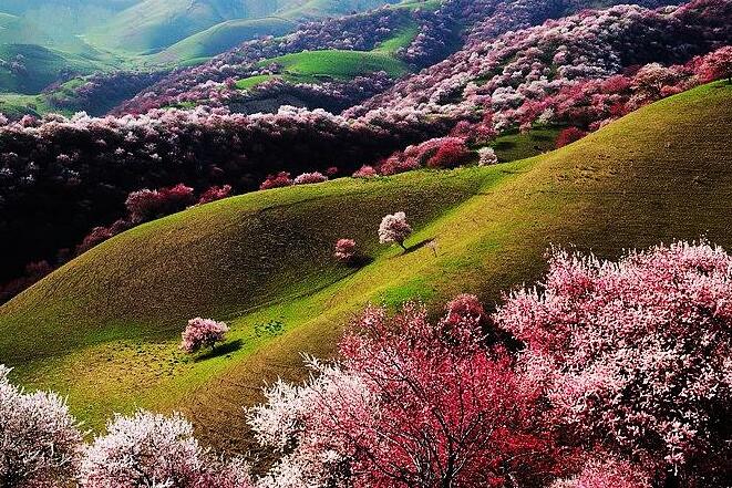 早餐后出發前往【中華福壽山景區】位于霍城縣西北的大西溝鄉境內,距伊寧市90公里,距縣城50公里。漫山遍野的杏花將景區裝點的風光如畫,美若仙境。景區內生長各類野果約60余種,以野酸梅、野蘋果、野核桃、杏、山楂為多,共有野生果樹幾十萬株。野酸梅是亞洲獨有的、唯一分布在伊犁河谷的罕見物種,其學名為櫻桃李。大西溝鄉是世界罕見、亞洲唯一野櫻桃李的原產地,被國家命名為“中國野生櫻桃李之鄉”。