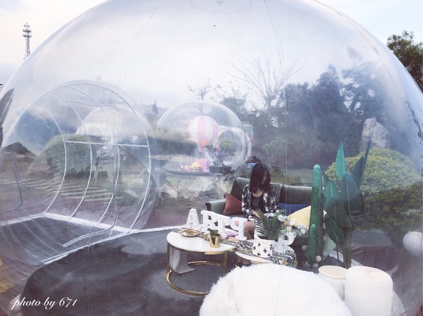 17:00前往【網紅泡泡屋】,整個別院里十幾個大小不一,風格不同的泡泡屋(櫻花房、熱帶風情、海洋球、粉紅木馬、火烈鳥等連體泡泡),輪流拍照打卡凹造型,泡泡屋外還有很多的陽傘藤椅可以看海景吹海風(免門票,消費咖啡果汁小吃拼盤等,費用約25-35元/位,自理哦)