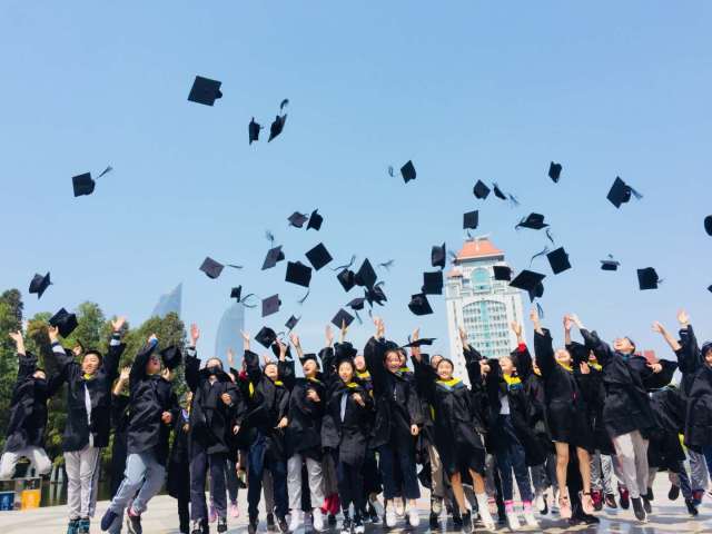畢業典禮(每人穿著學士服,在廈大里拍下畢業集體照,當學士帽上揚天空的那一刻,我的大學夢實現了)