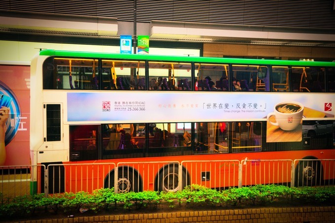 等了30分鐘的代價是,可以坐在big bus樓上第一排,遮風(fēng)擋雨還能偷拍。香港,隨處可見的異域風(fēng)情。