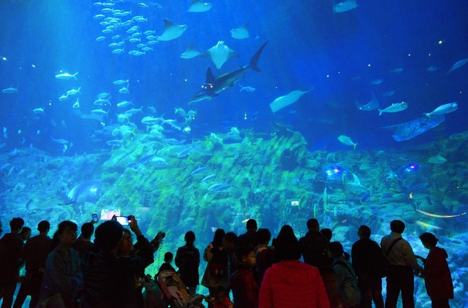 水族館標準照來一張,幾乎全世界都一樣吧。缸里沒有巨無霸的大型魚類,但也足以滿足小朋友們的要求。一進園就把山下的這個“海洋奇觀”水族館看了,而不是像很多攻略說的那樣直沖纜車。