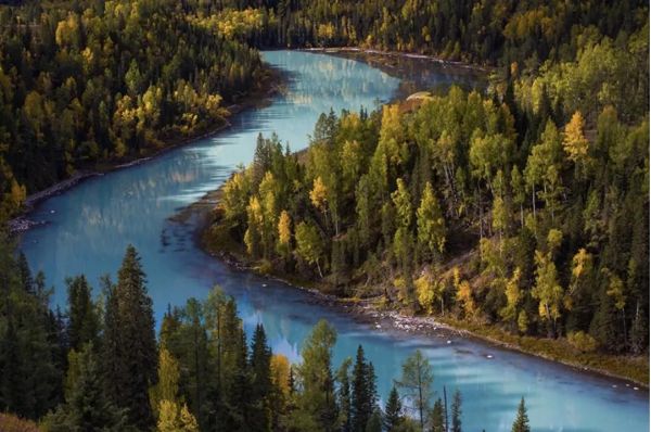 在喀納斯,各式湖泊絕對是必訪景點,湖底高低差加上光線的影響,總能給你意料之外的驚喜。而其中憑借地貌而走紅的當屬月亮灣,每到秋冬季節這兒擠滿了前來拍照的人。
