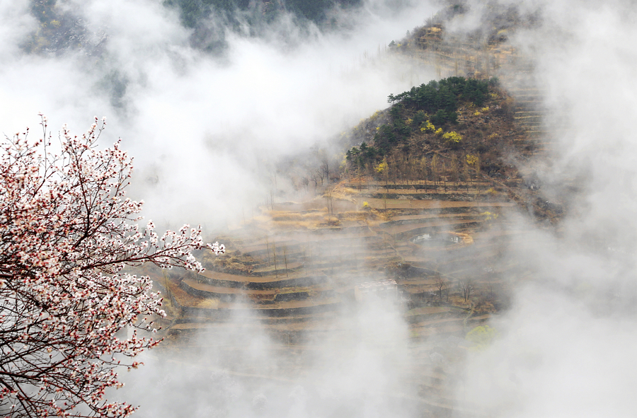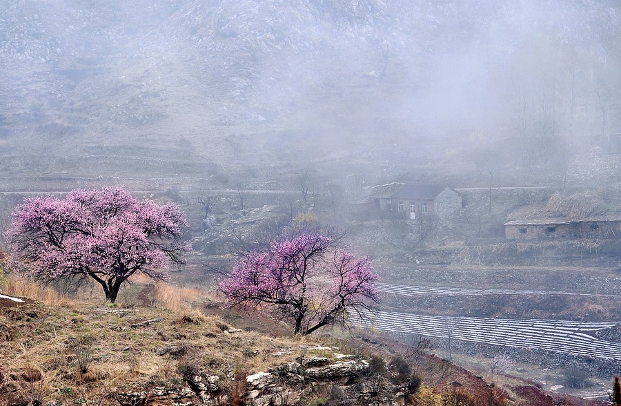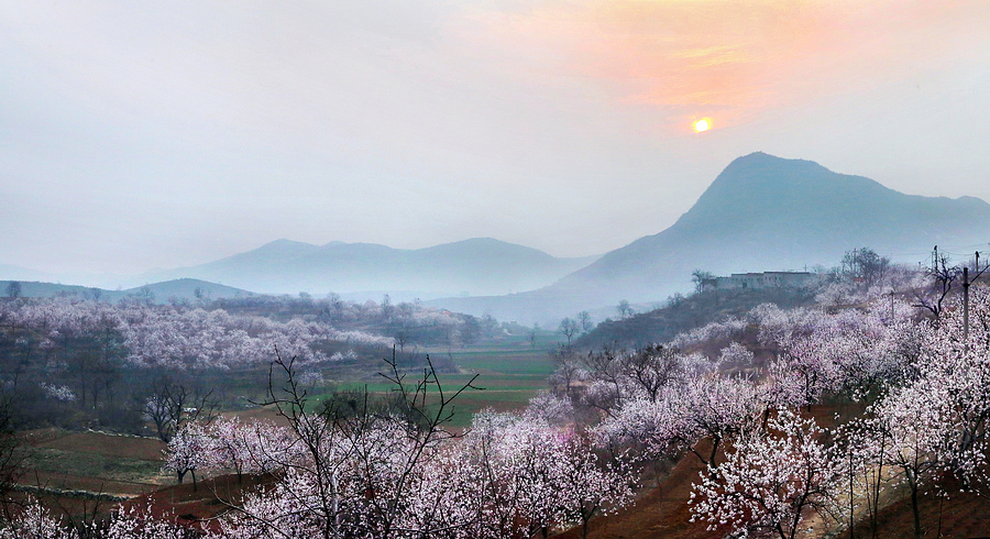 桃花、梨花、杏花、連翹花,相互爭(zhēng)艷