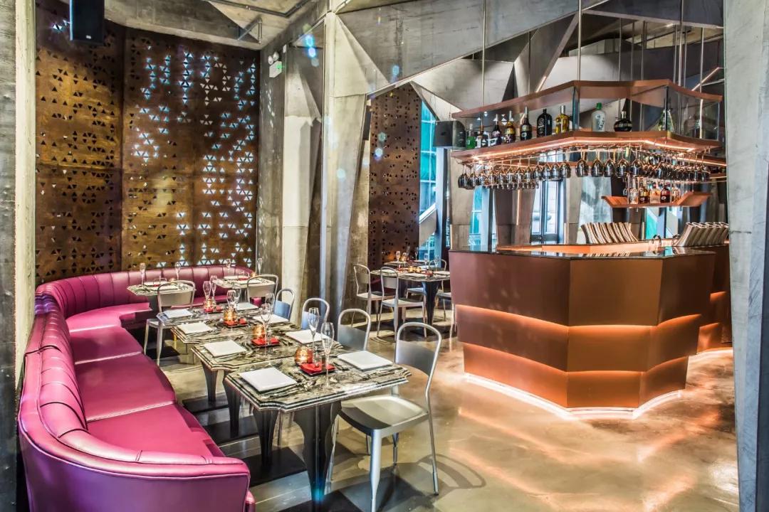 這種風格的酒吧設計,主要是用金屬質感散發出耀眼真實的光芒,唯美神秘的哥特穹頂,蒸汽時代的頹廢與吶喊,瞬間打動了人們。張揚不羈的個性、感官刺激享受,優美別致的意境,舒適激情的放松,這樣的氛圍下,人們不由得舒展疲憊的神經、釋放囚禁的欲望。