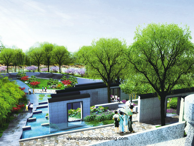 聊城眾多的河流,美麗的虎撲,形成了城中有水、水中游城、城水一體、交相輝映,不同景觀要素融為一體的獨特城市格局,黃河文化和運河文化在此交匯相融;中原龍山文化與典型龍山文并存;漕運文化、水利文化、文學藝術文化、民俗文化等在這里都有體現,人文資源獨具特色。園區將在入口景區用一個寧靜的睡眠和對景景墻開場,象征聊城。中區由五道疊水和融入水中墻體構成江北水城的景觀印象。園區東側最高處的上崗上,植富于野趣的樹林,形成寫意的景陽岡景觀,林中置亭,名打虎亭。在這里可以遠眺層巒疊嶂的百果山森林公園景觀,可賞自然與人工的園博園和融園景觀。