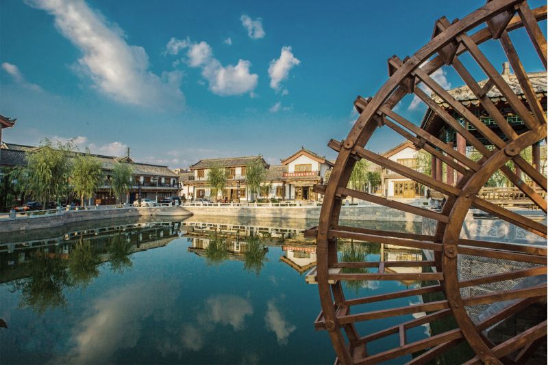 【廟會廣場】是展示宗教文化和地方市井文化的場所。廣場上建有春秋圣殿、城隍廟、古戲臺。春秋圣殿展示發源于春秋時期的諸子百家思想文化;城隍廟是人們求財保平安的場所;古戲臺是演出地方戲曲和地方歌舞的場所。