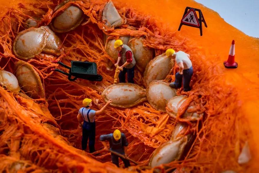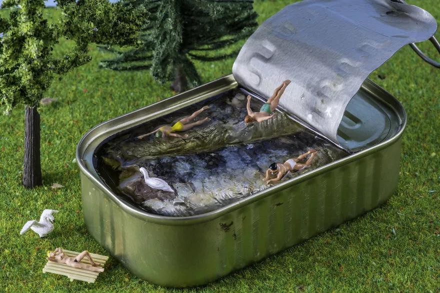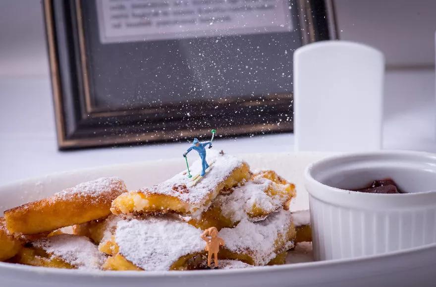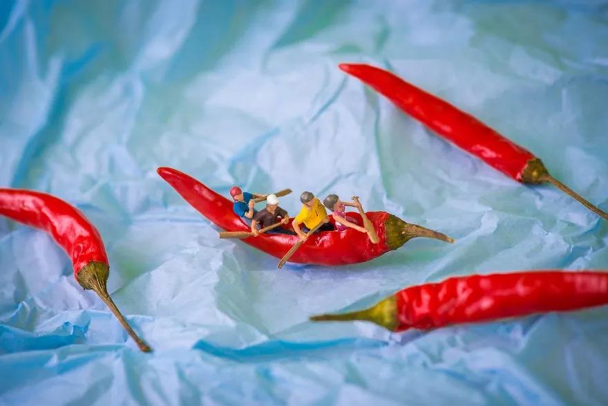 來自匈牙利布達佩斯的美食攝影師彼得近三年改變了以往的攝影風格,他利用微縮模型、食物和日常用品搭配組合,創造了一個名為“Tiny Wasteland”(袖珍荒原)的攝影系列。