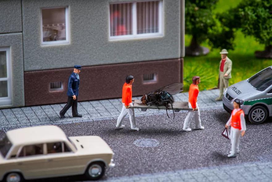 即使明明知道這些照片是“假”的,只是在用小模型在模擬現實生活場景,可因為攝影師奇趣無限的想象力,也會讓觀眾忍不住一張張翻下去,看看下一張又會出現什么意料之外的場景。