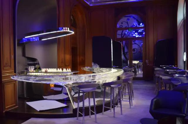 非常酷的半透明吧臺與墻壁上的不銹鋼燈具是最絕的搭配,賦予空間更多自由的靈魂。