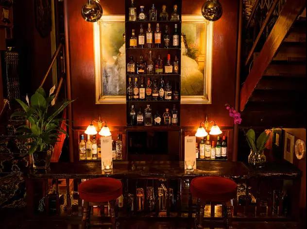 如果你是個威士忌愛好者,那你可就一定要來這里品嘗一下了。一樓有一個小銅頂酒吧,只有幾個凳子,窗戶上還有一張兩人桌子,并且這里只有威士忌。