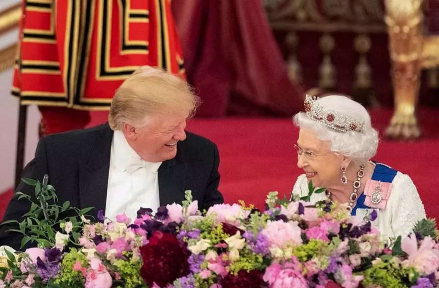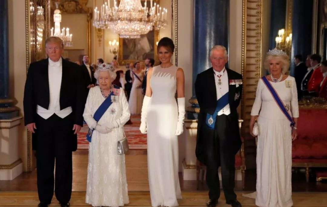 英女王在白金漢宮宴請(qǐng)首次到訪英國的美國總統(tǒng)唐納德?特朗普。