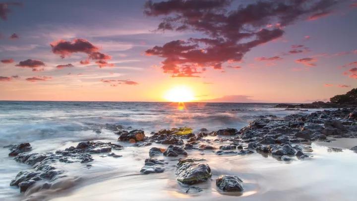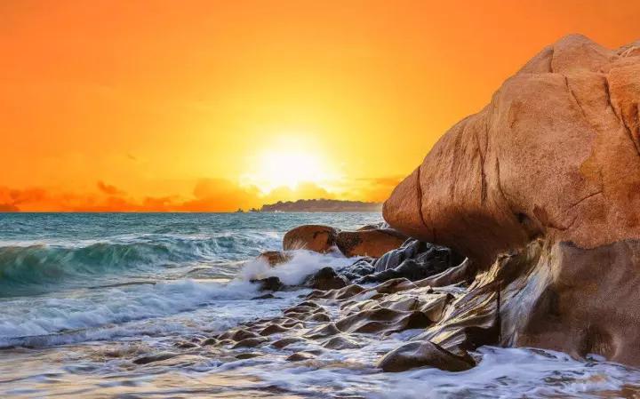 單純的拍風光。夏季去海邊游玩的機會可能會更多,一望無際的大海,加上岸邊的石頭組合起來,會成為一張很不錯的夕陽圖片。