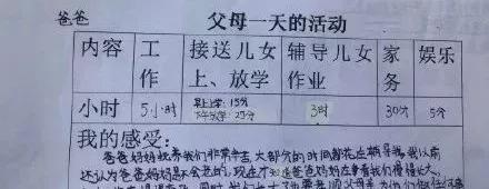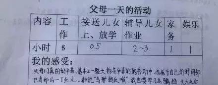 “調查父母的時間”這項特殊的作業,讓很多孩子知道原來平時陪伴自己最久的是父母...